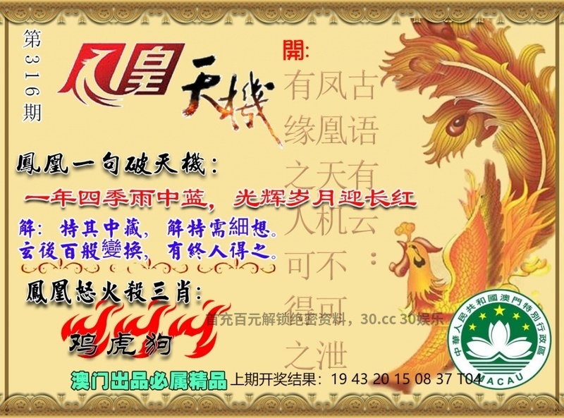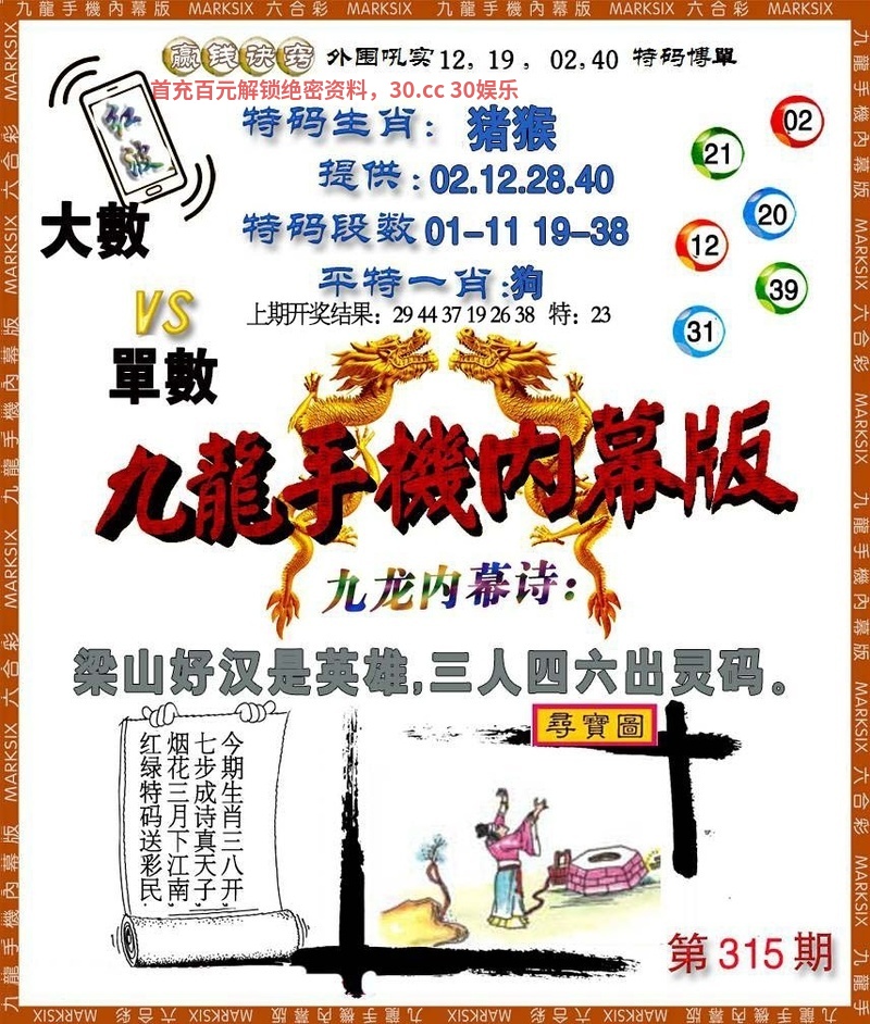 316期⑨肖:猪猴虎龙鼠鸡兔蛇